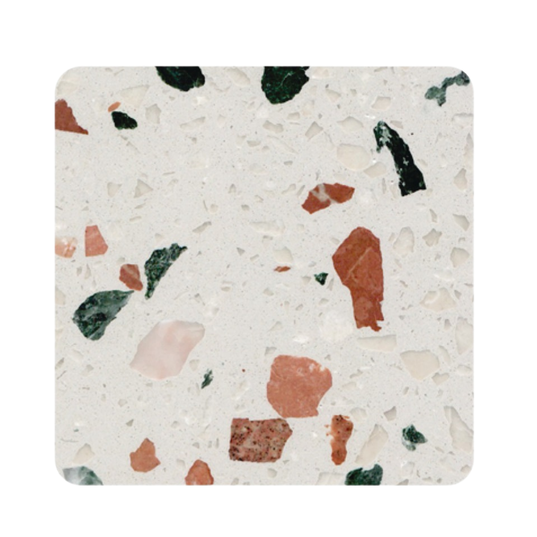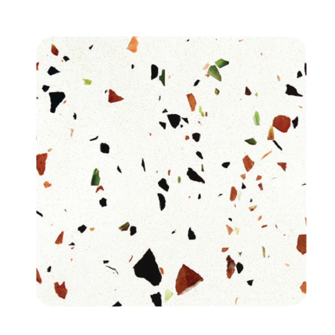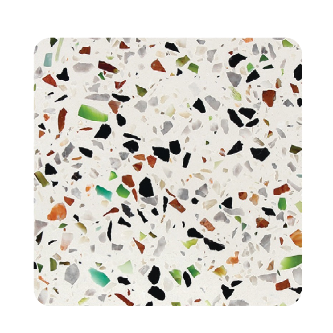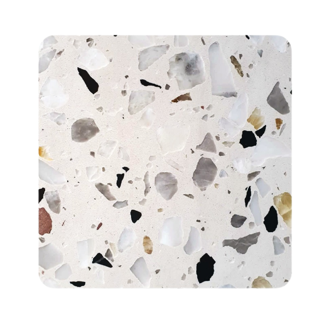 TALOS (Terazzo) achieves many of the aesthetic qualities found in ceramic tiles or stone surfaces. Made with special aggregates, Terazzo offers complete creative freedom for customers to establish the ideal mix of colours they desire. It is among the highly sought-after material for flooring use.